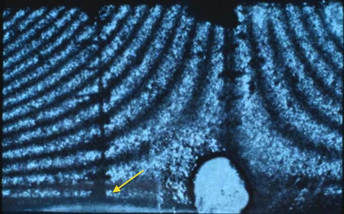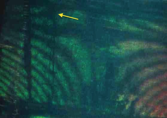 Ligament structure. Bifurcation/Fusion of collagen fibrils in normal MCL tissue at 20,000X (arrow). Note the collagen fibril overlap and interweaving.
